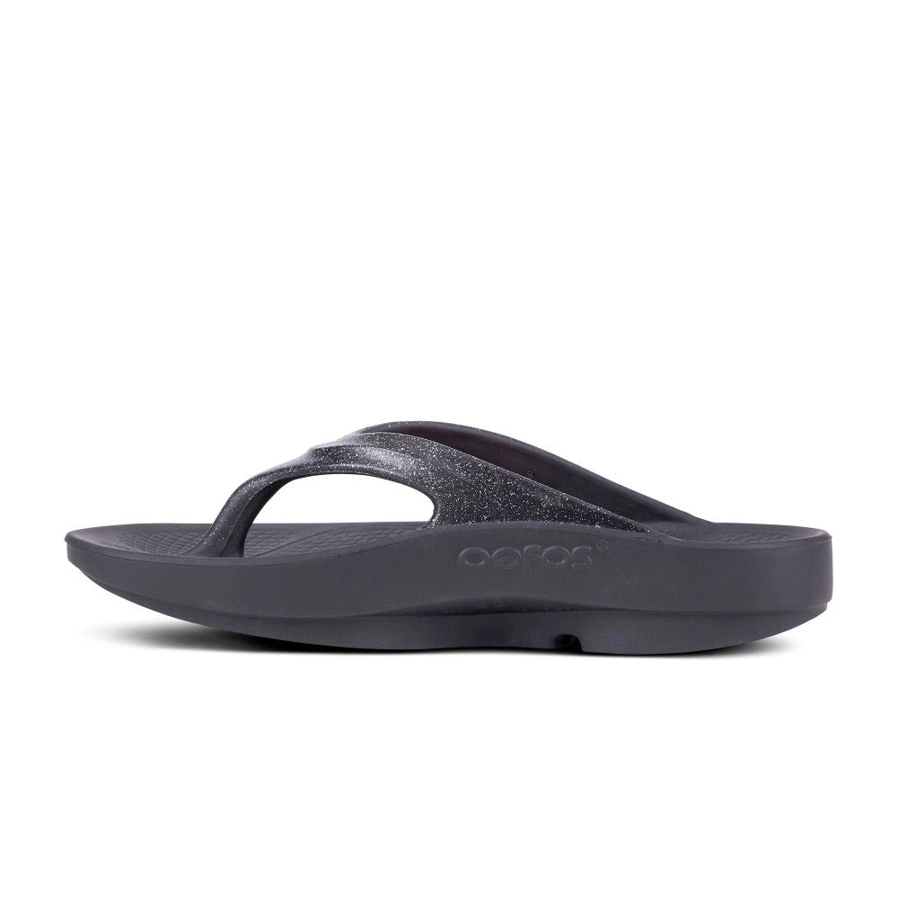 ‘OOFOS’ Women’s OOlala Luxe Thong – Glitter Black